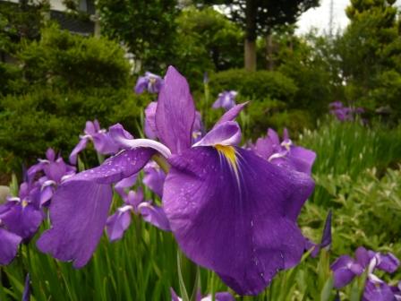 例年より早く梅雨にはいり、これまた早い時期の台風と一緒になって、今日は大雨。この雨では頭の重いジャーマンアイリスは倒れてしまうのでは、と心配。